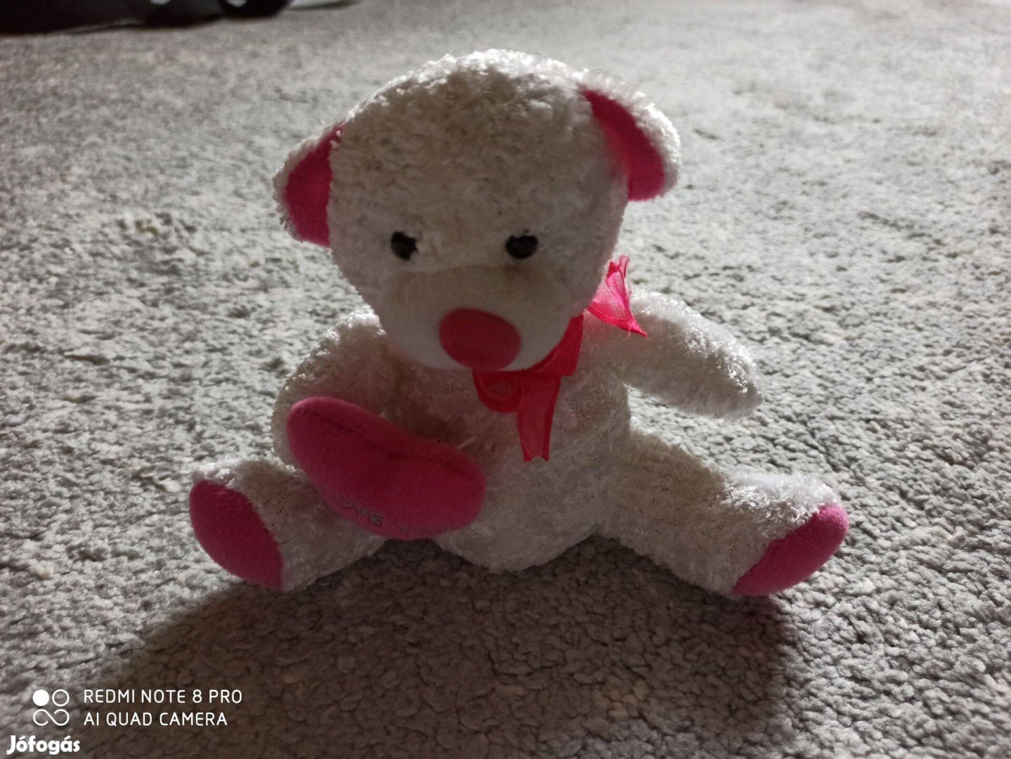 Fehér plüss maci rózsaszín szívvel új állapotú 15 cm magas 1500 Ft-ért eladó.