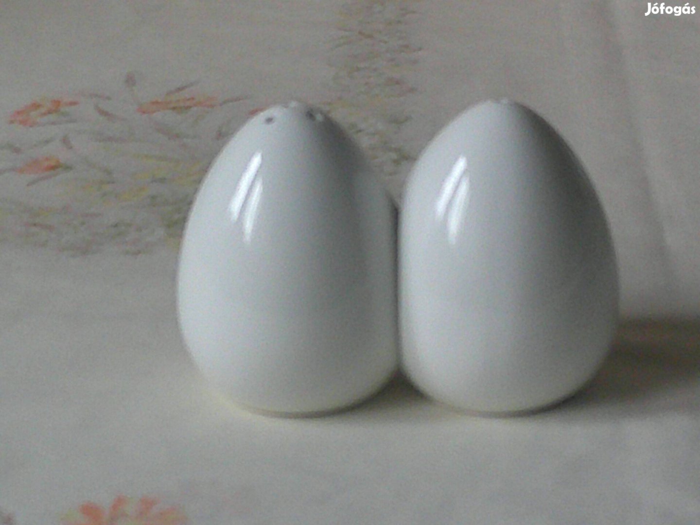 Fehér porcelán tojás alakú fűszertartó, sótartó ( 2 db. )