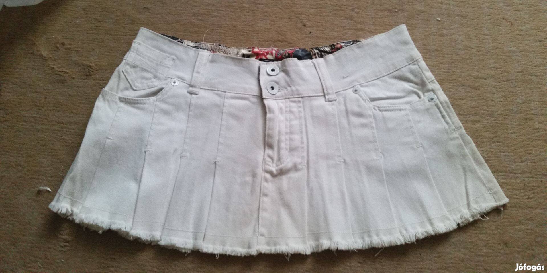 Fehér rakott farmer miniszoknya, alul rojtos, L-es méretű új állapotú 2500 Ft-ért eladó.