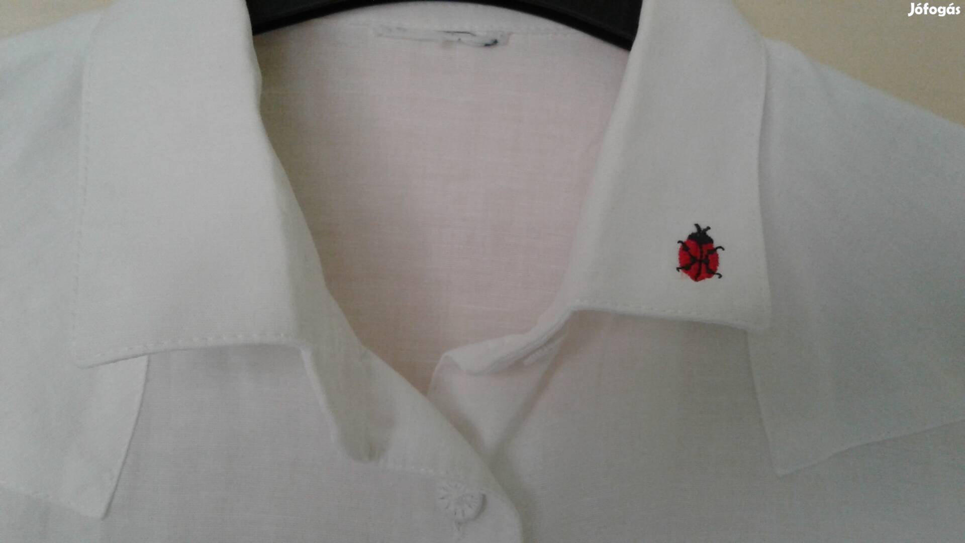 Fehér rövid ujjú vászon ing, hímzéssel, katicabogárral. 40-es