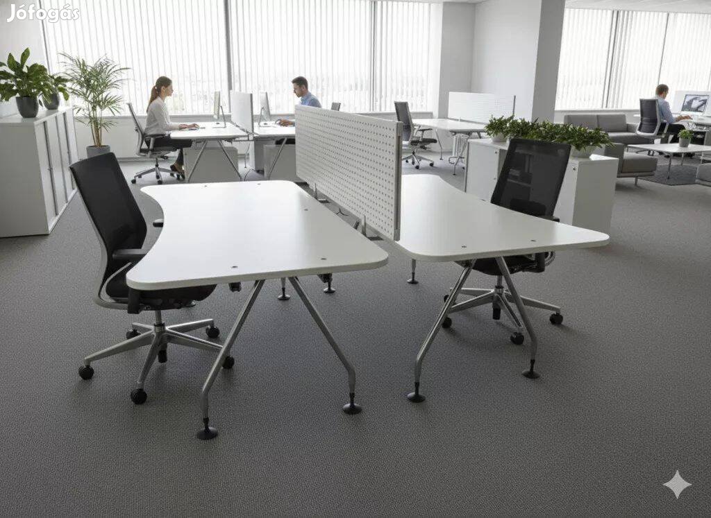 Kétszemélyes íróasztal eladó budafoki raktárunkból - nagy mennyiségben. Ergonomikus kialakítással, fehér asztallappal és állítható magasságú, krómozott fém lábakkal. A középső paraván külön megvásárolható. Újszerű állapotban.Személyesen megtekinthető, keressenek bizalommal: