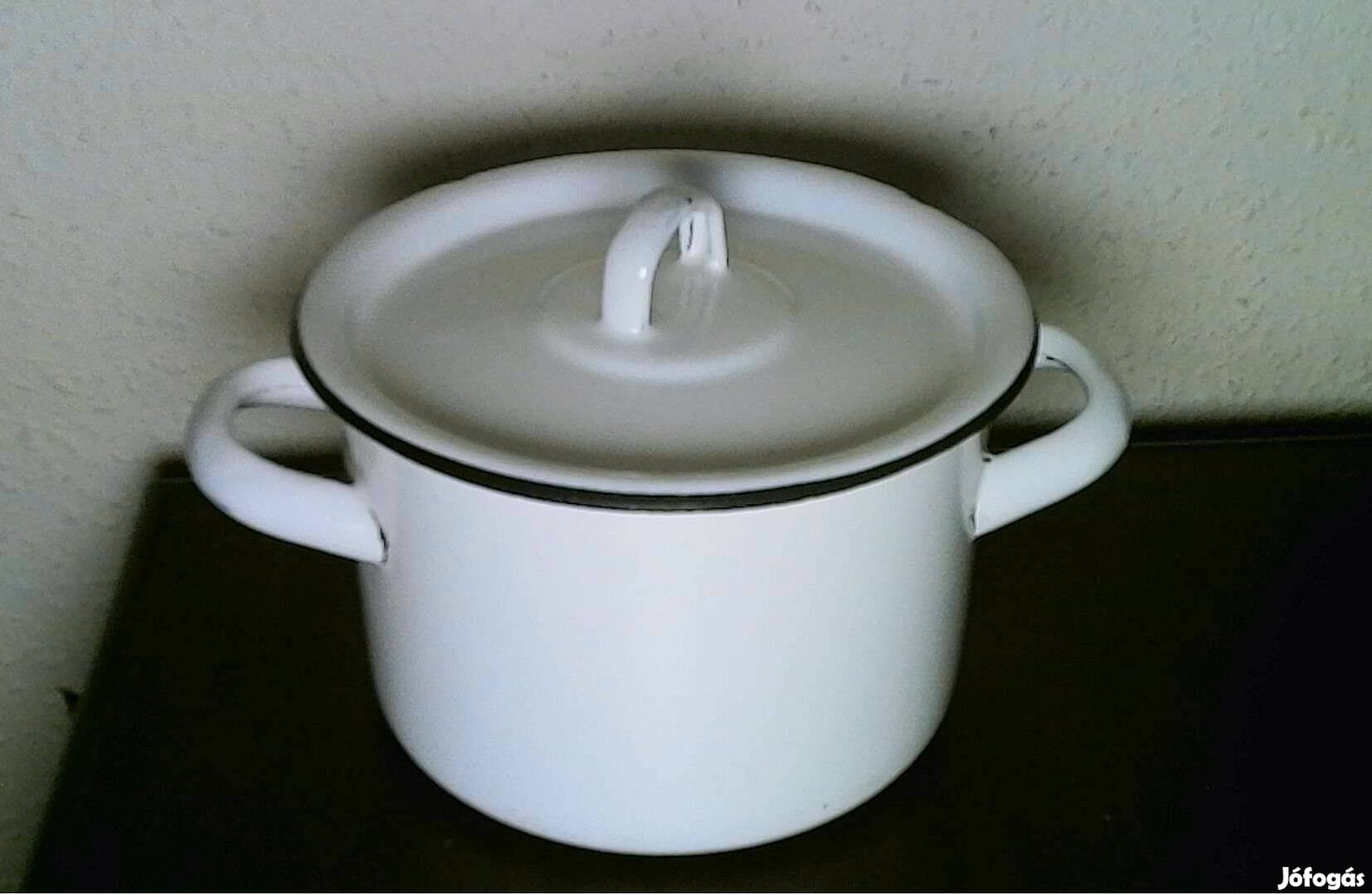 Retro fehér zománcozott 1,5 literes fazék + fedő.