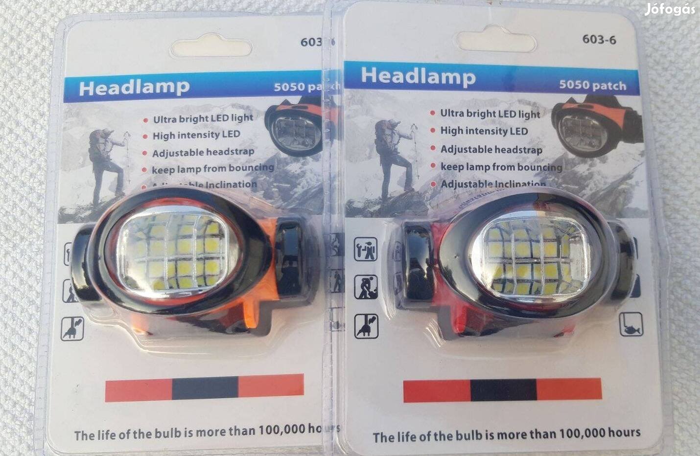 Új 6 Ledes nagy fényerejű fejlámpa, túrázáshoz, táborozáshoz, horgászathoz, szerelési munkákhoz stb., bontatlan csomagolásban eladó. 100 ezer óránál is hosszabb Led élettartam. 3 db AAA elemmel működik, flexibilis fejpánt, racsnis dönthető lámpafej.