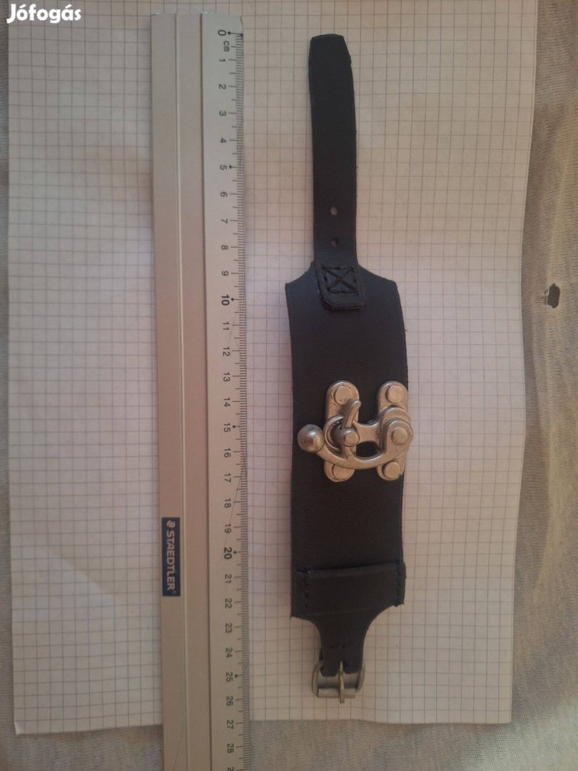 Eladó egy általam készített,fekete,bőr,steampunk jellegű karkötő. Méret a képen...