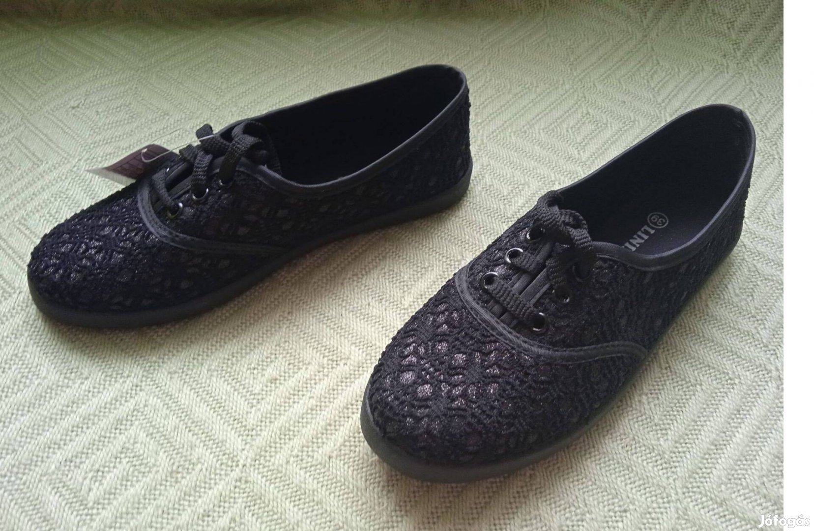 Vadonatúj, fekete, csipkés tornacipő, vászoncipő eladó.