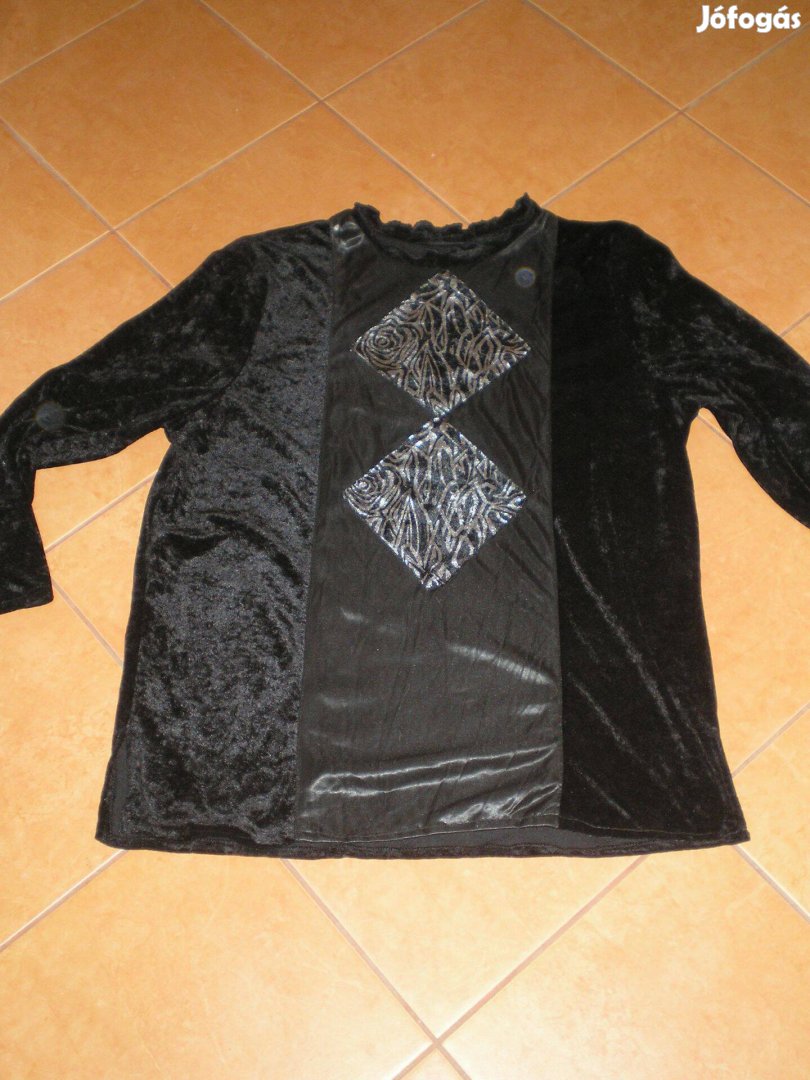 Fekete bársony hosszú ujjú női felső, ezüst mintákkal XL-es XL