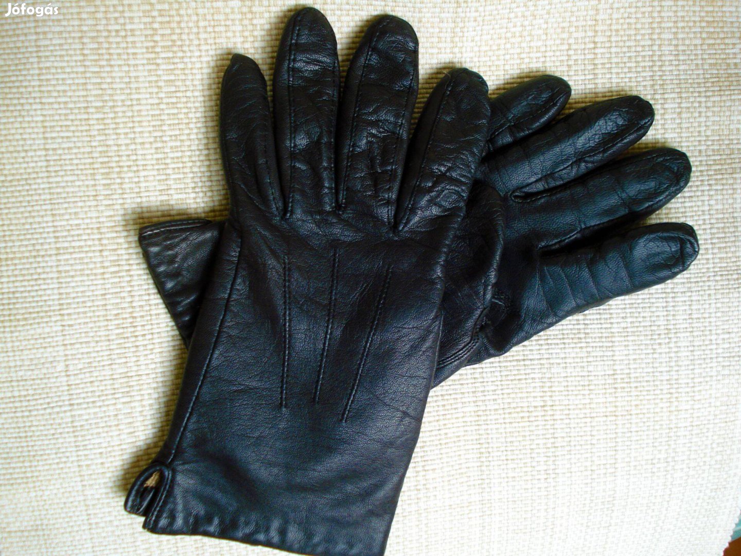 Fekete valódi bőr, belül meleg béléssel, M-es méretű kesztyű, hibátlan, szép állapotban.