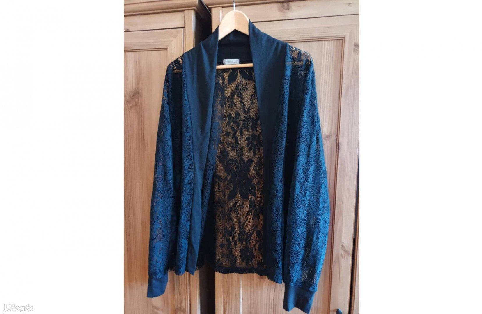 Eladó újszerű állapotban egy fekete csipkés nyitott blúz. Méret: hossz: 75 cm, váll: 56 cm, mell: 60 cm, ujj: 62 cm. Ár: 2000 Ft.