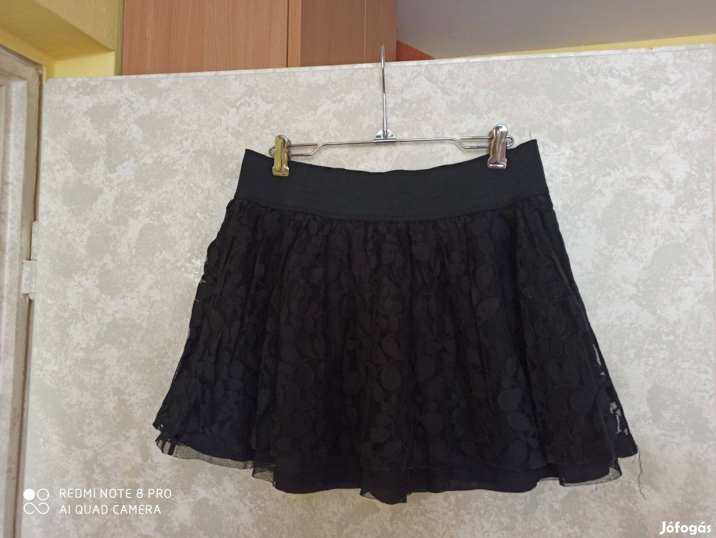 Fekete gumis derekú csipkeszoknya S-es méretű új állapotú 2500 Ft-ért eladó.