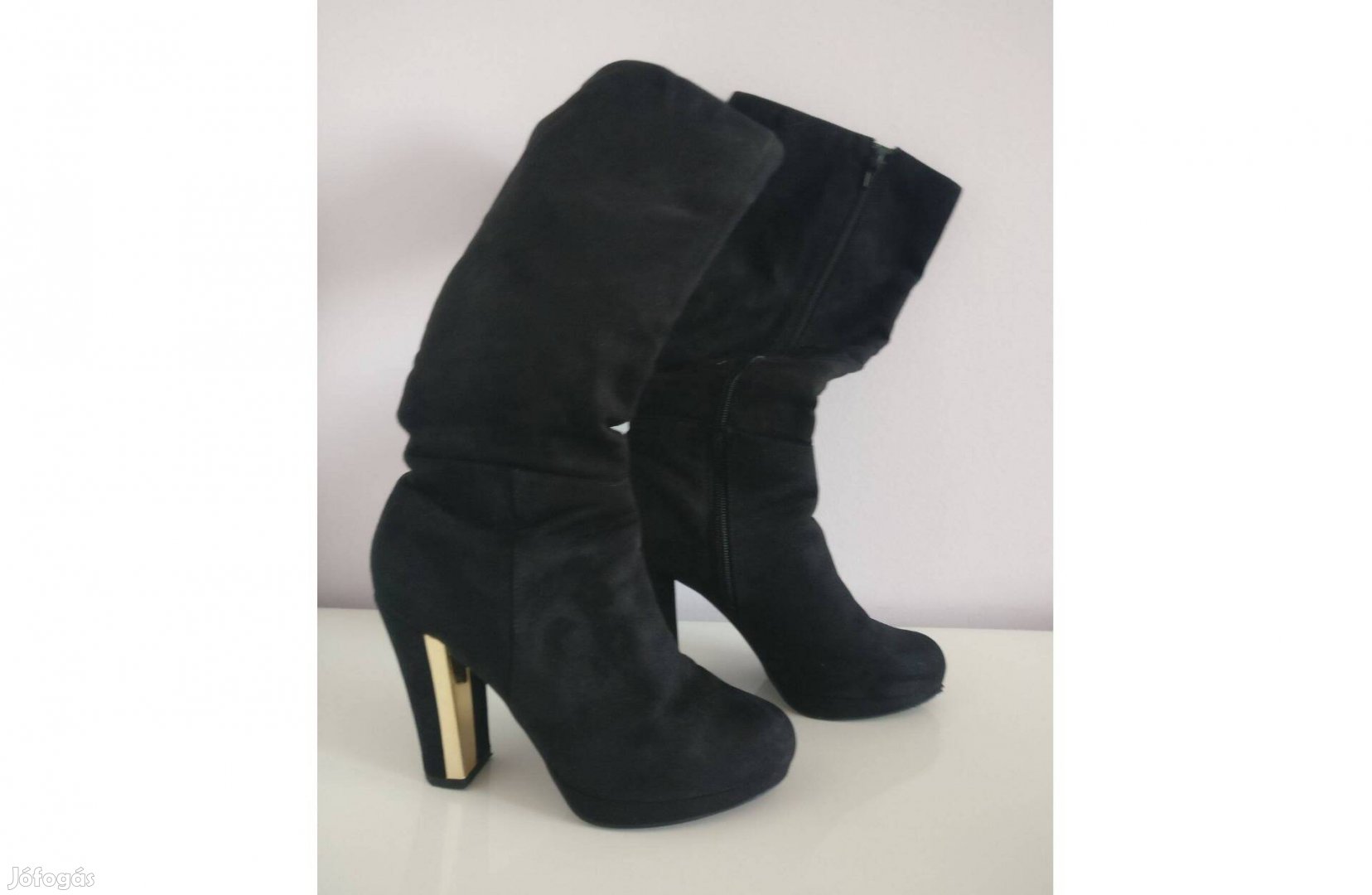 Fekete csizma eladó 39-es méretben, dekoratív sarokkal, kitűnő állapotban. Sarokmagasság 10 cm.
