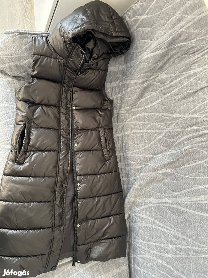 Kapucnis ujjatlan fekete női kabát eladó M/L méretben.