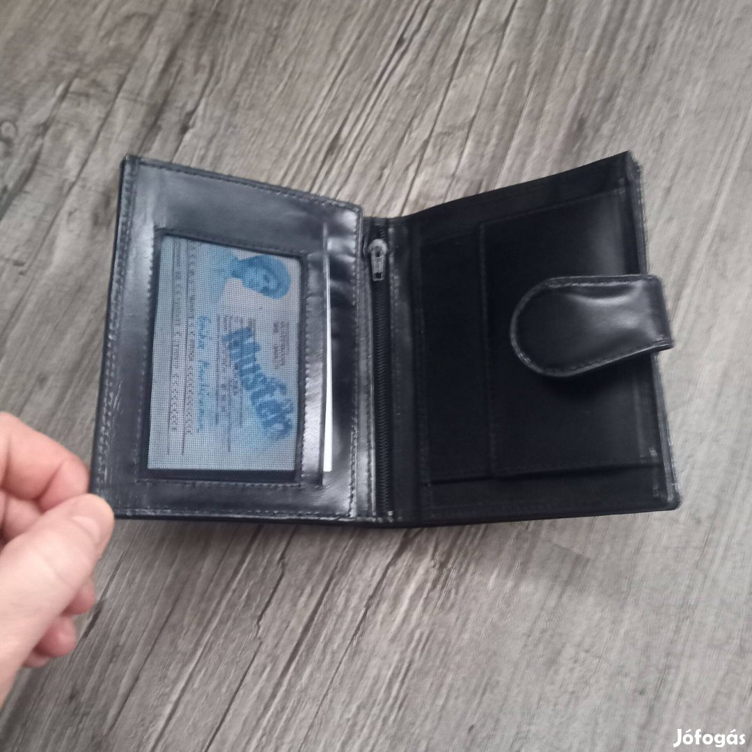 Teljesen új fekete műbőr pénztárca, patentos éremtartóval, 8 db belső kártyatartóval, belül zipzáros