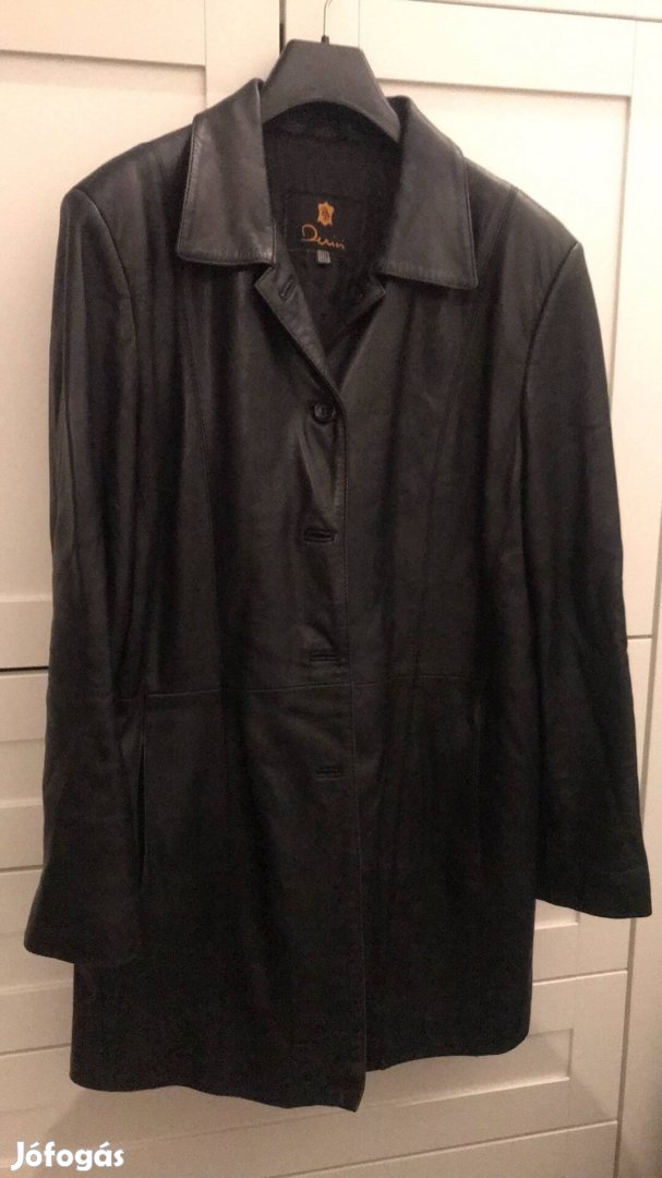 Török, fekete, puha női bőrkabát, 3/4-es hossz.