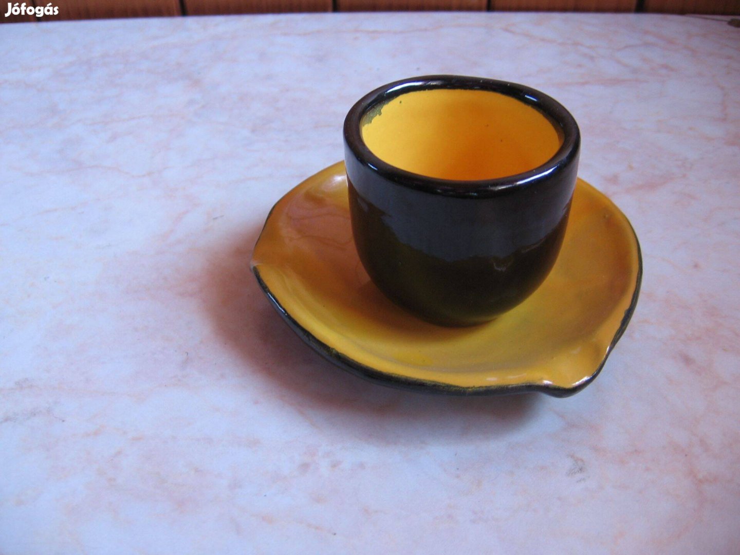 Mázas kerámia, a tányér átmérője 12 cm, a tégely átmérője 6,5 cm, magassága 6 cm.