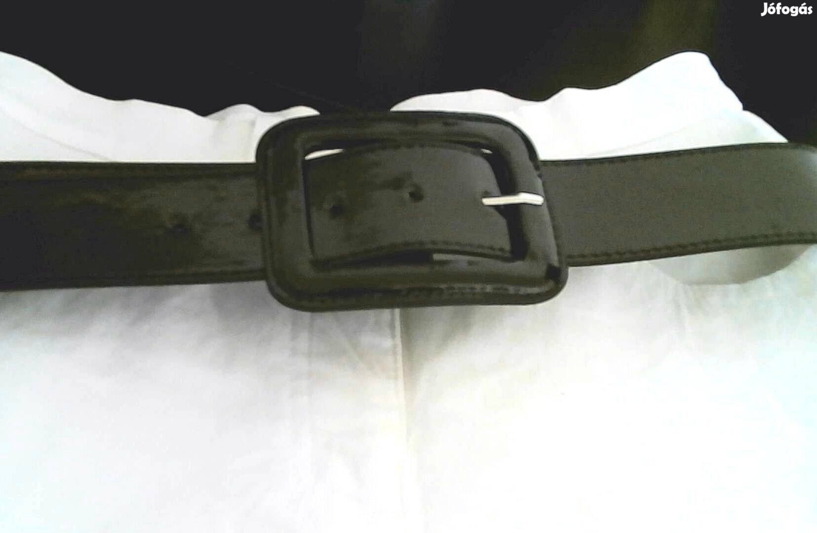 Divatos, széles fekete lakk öv, 90 cm hosszú, 4,5 cm széles.
