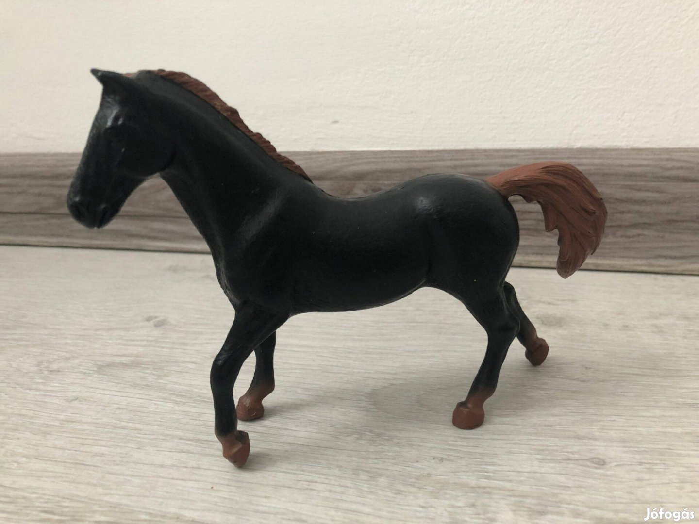 Képek szerinti nagyon szép állapotban nagyobb (tenyérnyi méretű) fekete játék ló figura.