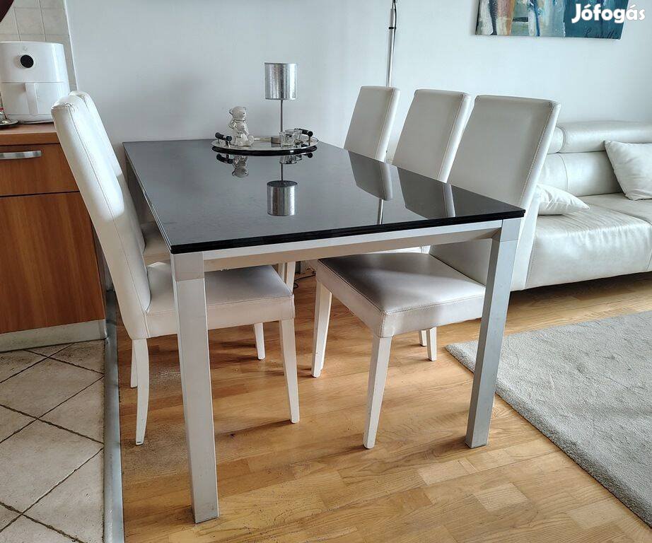 Korábban Svájcban vásárolt vastag fekete üveglappal rendelkező étkezőasztal, króm lábakkal eladó.