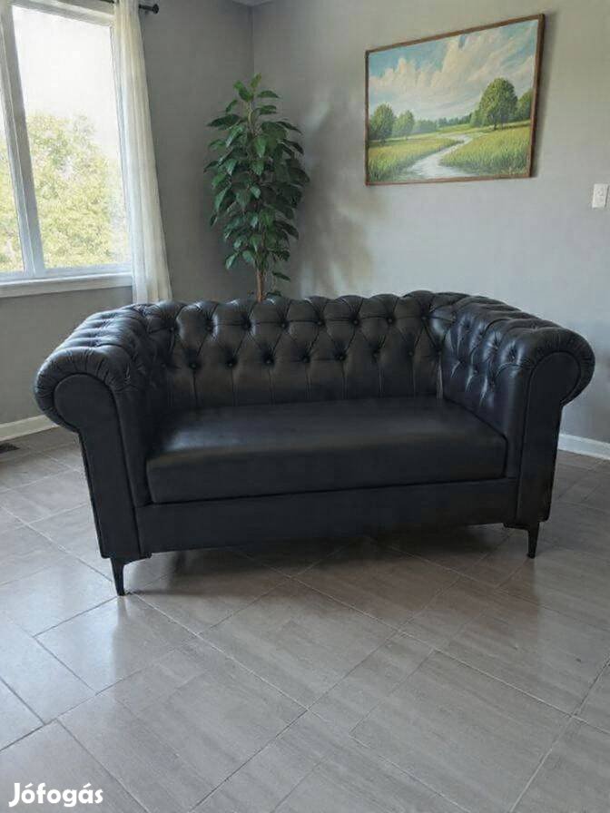 Fél ár!Bezárunk!!Új valódi bőr Chesterfield fekete kanapé 300e Ft