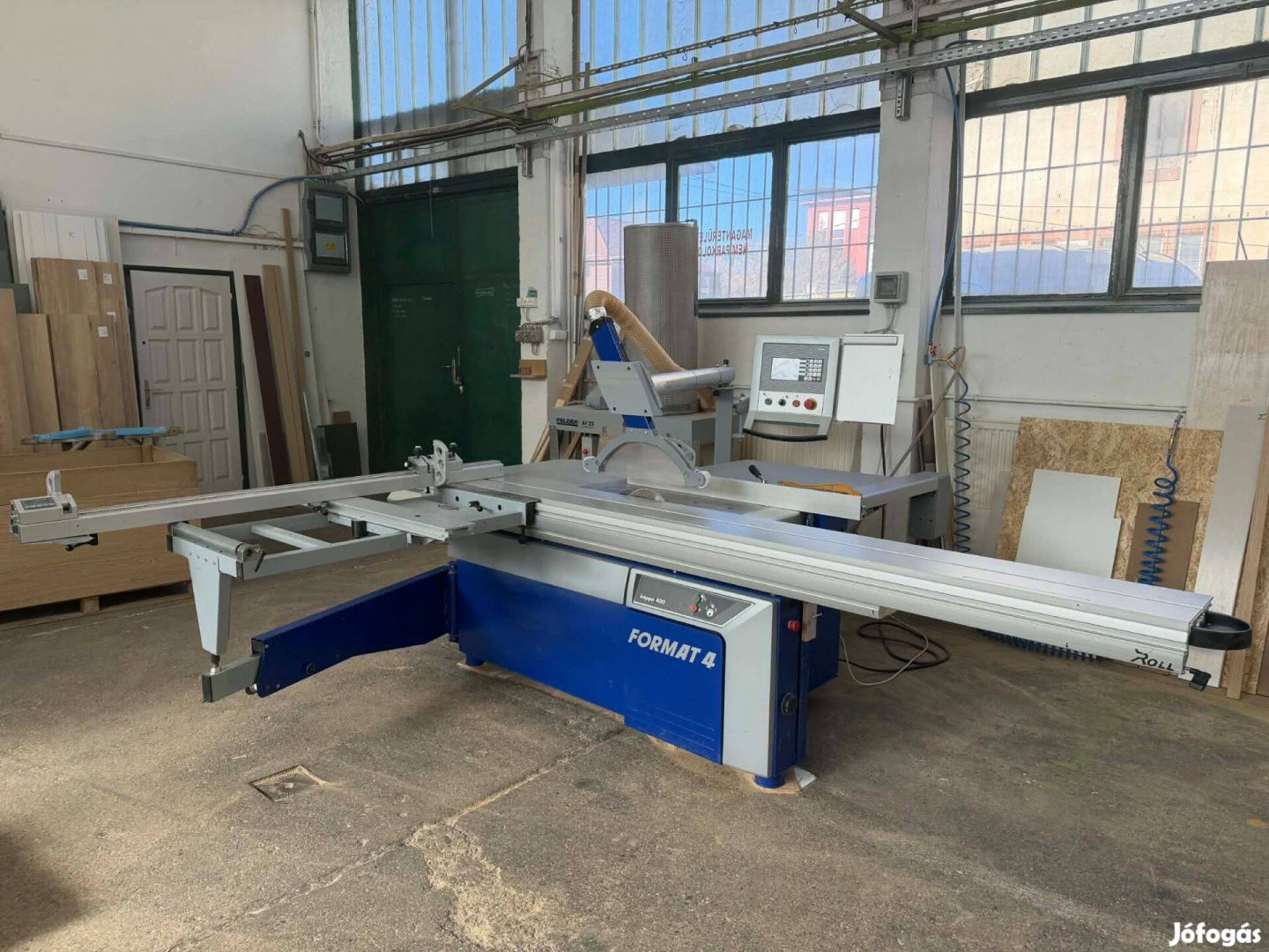 Típusváltás Miatt Eladó 2022 Évjáratú Lapszabászgép, Elektormosan Állítható Párhuzam Vonalzó, Körfűrészlap, Szögben Döntés, 3200 Hosszú Asztalal, 1250 MM Széles Oldal Asztalal, Hbátlan Működéssel