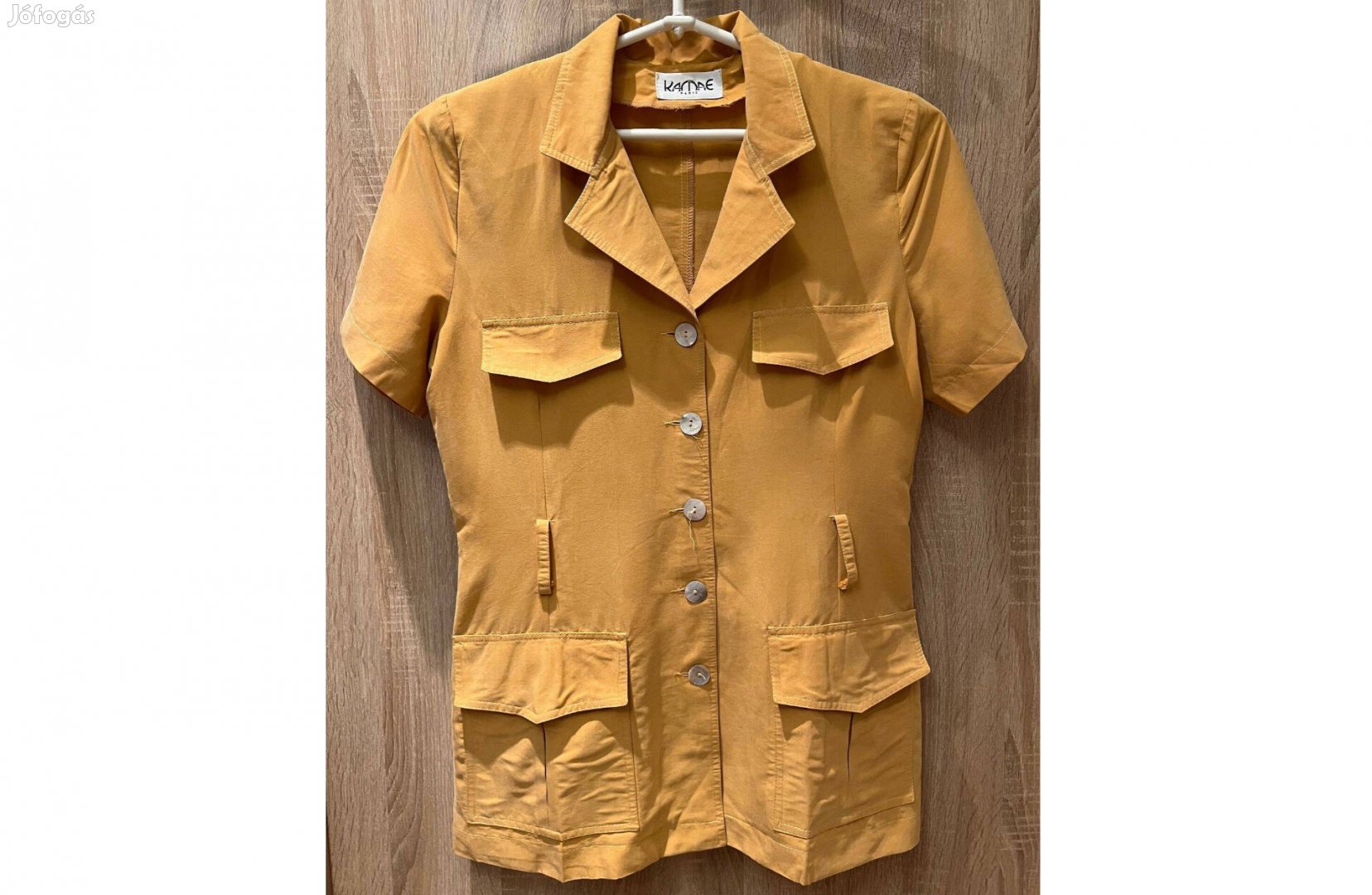 Kiváló állapotban lévő újszerű Kamae Paris márkájú Franciaországból származó elegáns, női blúz eladó. Ing kabát fazonú , rövid ujjú , hátul sliccelt , bő fazonú , galléros öt gombbal gombolódó 4 rávarrt zsebbel , kettő alul , kettő mellnél. A gombok is nagyon különlegesek , kagylóból csiszolt gombok.