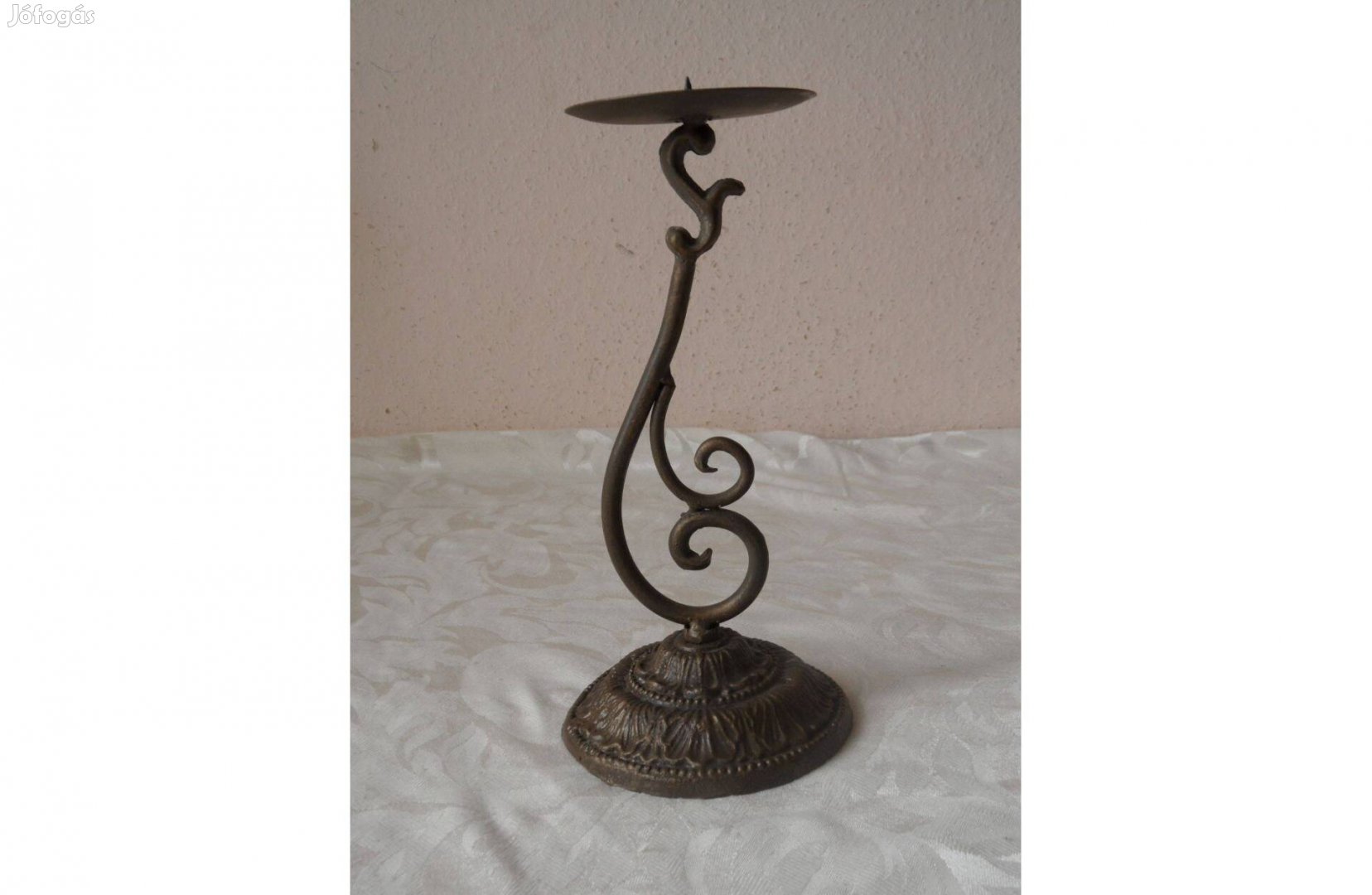 A képen látható fém, őntőttvas gyertyatartó eladó.
