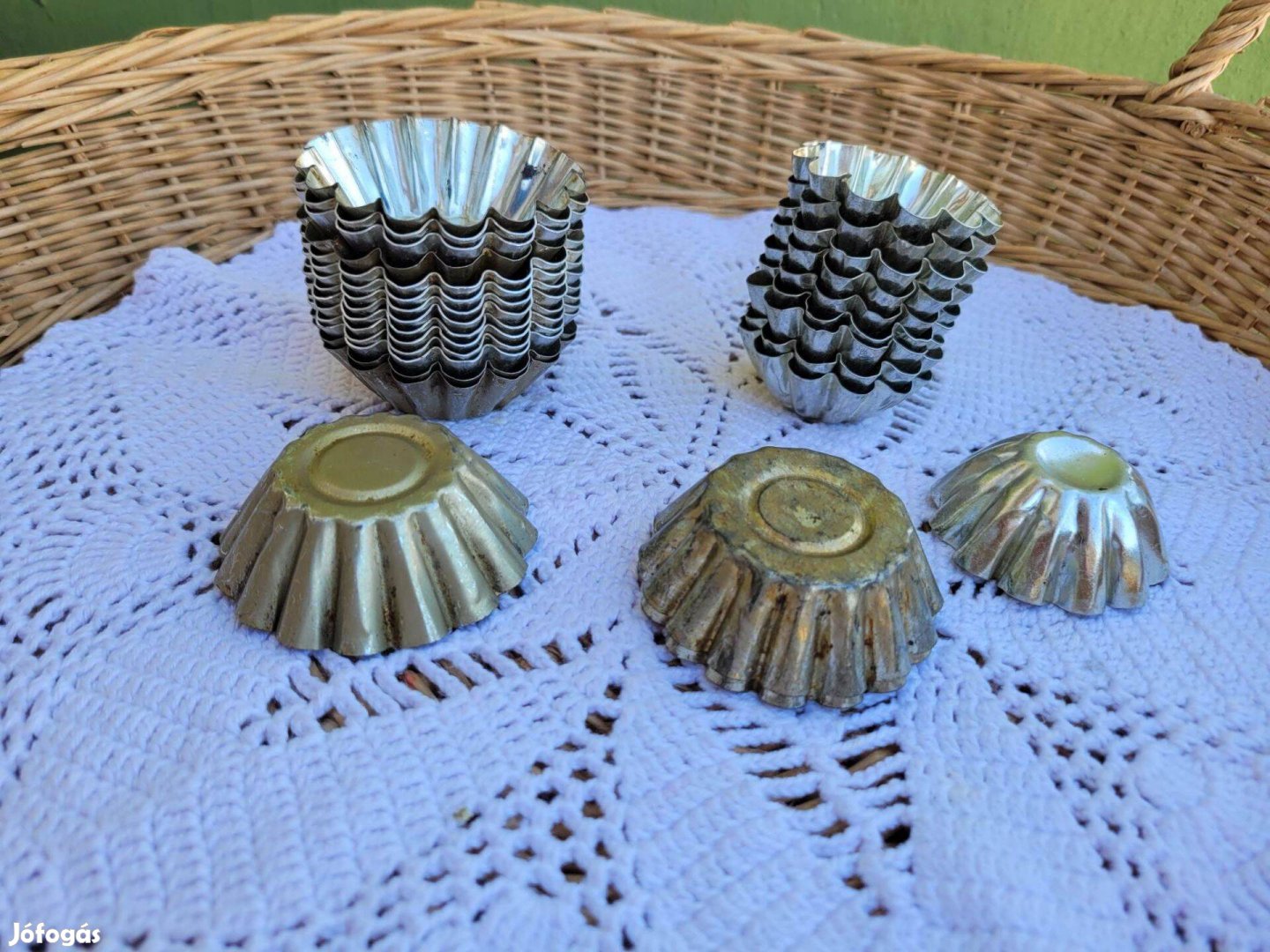 Eladásra kínálom a képen szereplő fém kosárka sütőformákat. A képek magukért beszélnek. Körbe fotóztam, szép állapotban.