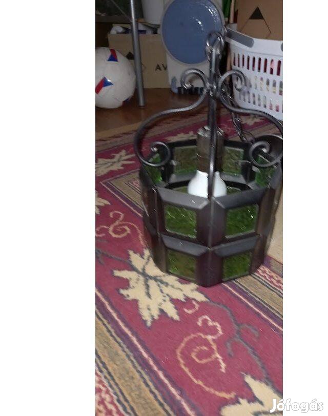Jó állapotú fém mennyezeti lámpa zöld üveggel kombinálva.