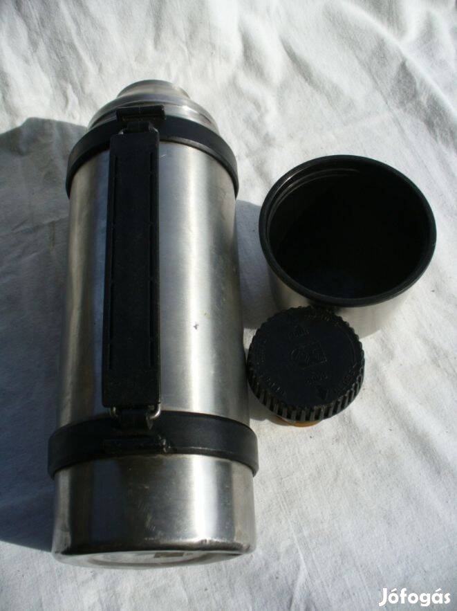 fém termosz kulacs 1l pohárral, használt belseje nem dzsuvás, jól használható ..........