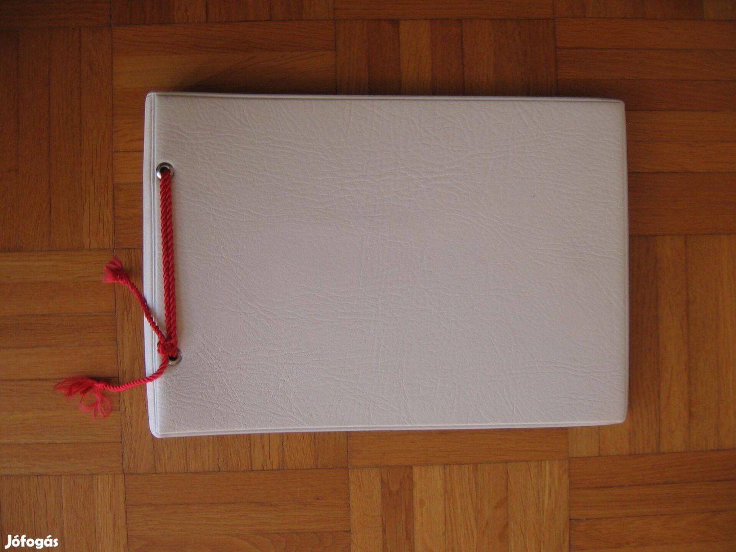 Fehér külső borítókkal, 24 fekete kartonlappal, piros kötővel.