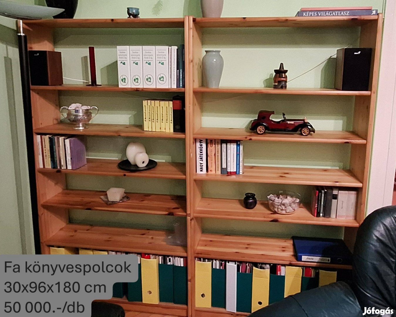Stílusváltás miatt eladó szép állapotú igazi fa könyvespolcok, 430x96x180 cm, az ár/darab vonatkozik, MÁR Csak 1 DB Van, Budapesten a 6. kerületből vihető liftes házból, szállításban sajnos nem tudunk segíteni.