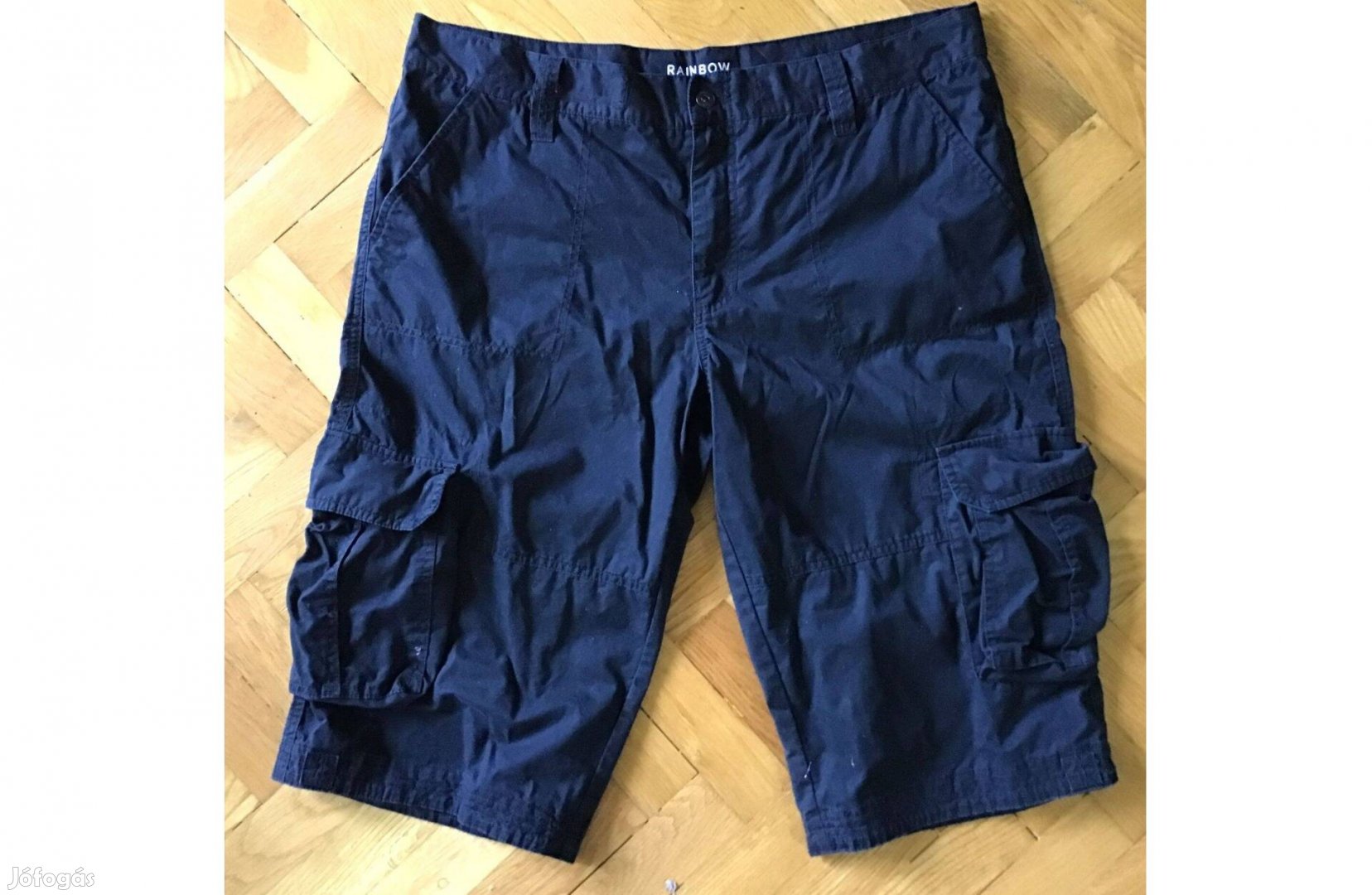 Zsebe: 2 oldalsó svédzseb, 2 rátett oldalzseb, 2 rátett hátsó zseb