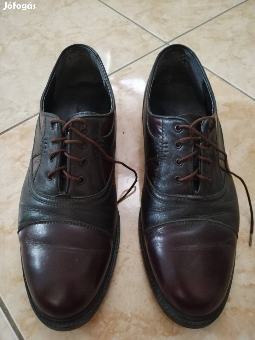 Eladó a képen látható 44-rs férfi cipő. A belsejében a sarkánál a kaptafa kikoptatta. Utolsó két képen fotóztam a hibát.