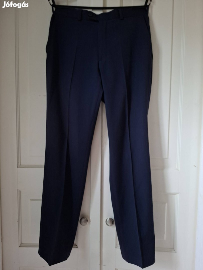 Eladó a képen látható néhány alkalommal viselt C&A Canda márkájú, sötétkék, 48-as mértű, elegáns férfi szövetnadrág, teljesen újszerű állapotban. Anyaga: 73% poliészter, 27% viszkóz.