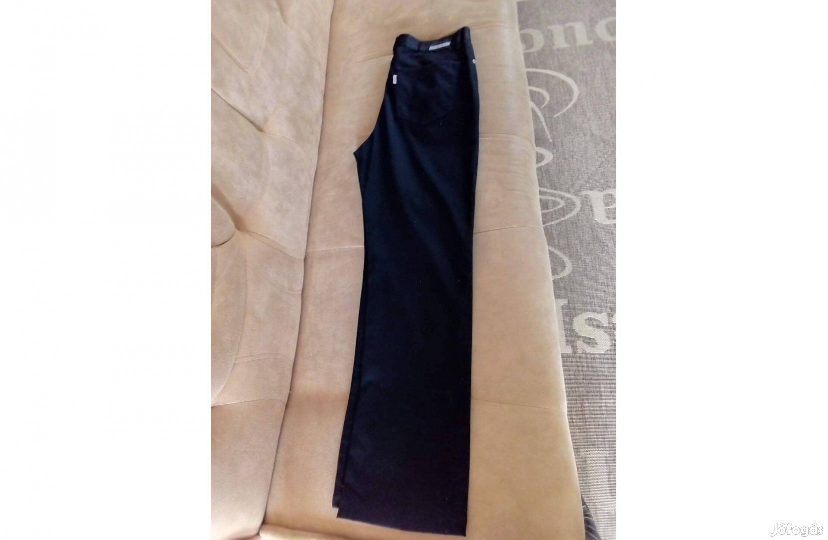 Keveset használt, fekete kevert szálas nadrág eladó. Méretek: derékbőség: 86 cm, csípőbőség: 118 cm , szár hossza:110 cm, szár bőség alul 40 cm. Több nadrág vásárlása esetén 3 eFt/db.