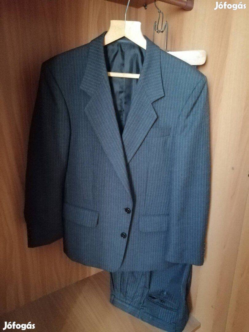 Eladó a képeken látható alig használt, vagy nem használt 4 db öltöny: drapp, fekete, szürke csíkos, kékeszöld színekben. Méretek: vállban 43 cm., mell kb. 50 cm., derék kb. 48 cm. Ujj kívülről 60, belülről 40 cm. Nadrág derékban összehajtva 40 cm., hossz deréktól 96 cm., belső hossz 70 cm.. Ár 9.000,-/ db