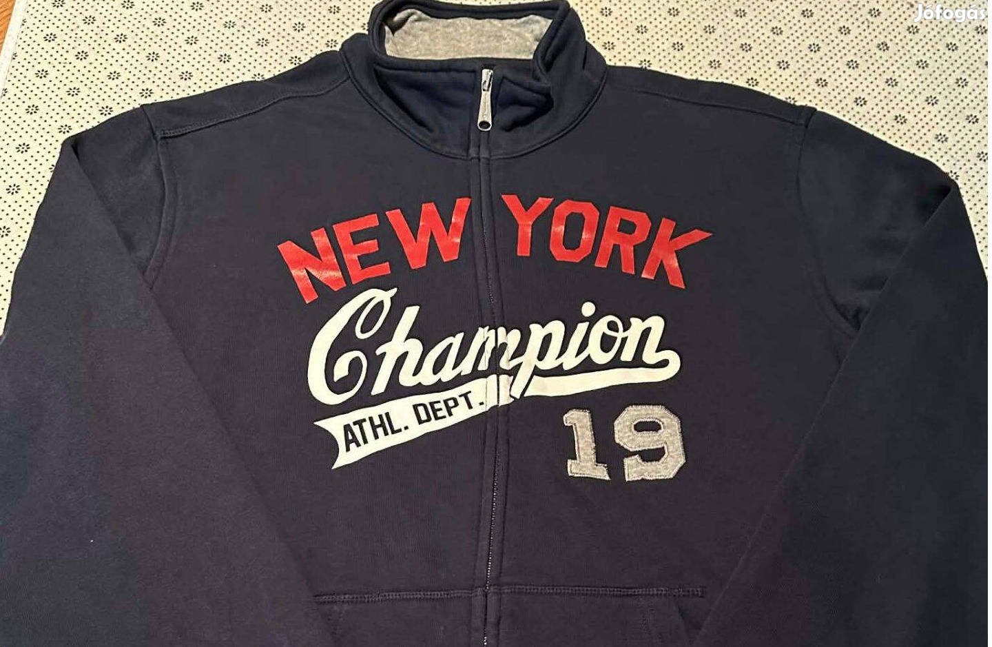 Méretprobléma miatt eladó,egy használt,a képeken látható nagyon szép állapotában levő,hosszú ujjú sötétkék cipzáras kapucnis férfi (Champion) felső,XL-es méretben!!