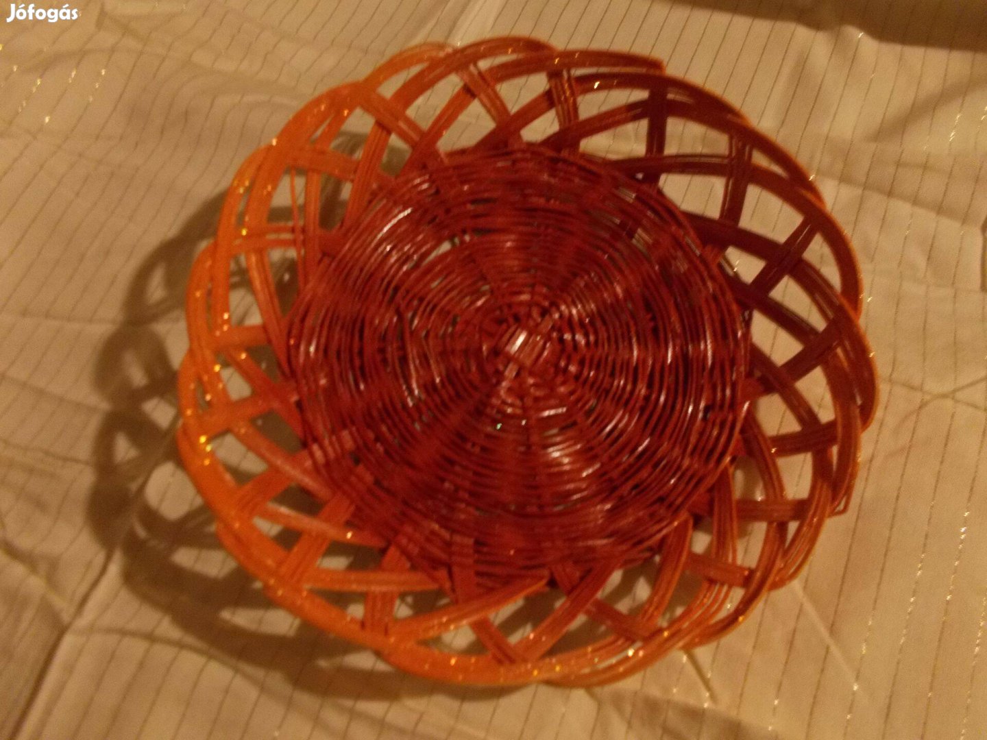 Eladó a képeken látható festett fonott kosár, bordó-narancssárga, arany csillámos szélekkel, átmérője 23 cm. Átvehető Budapesten, kérésre postázom.