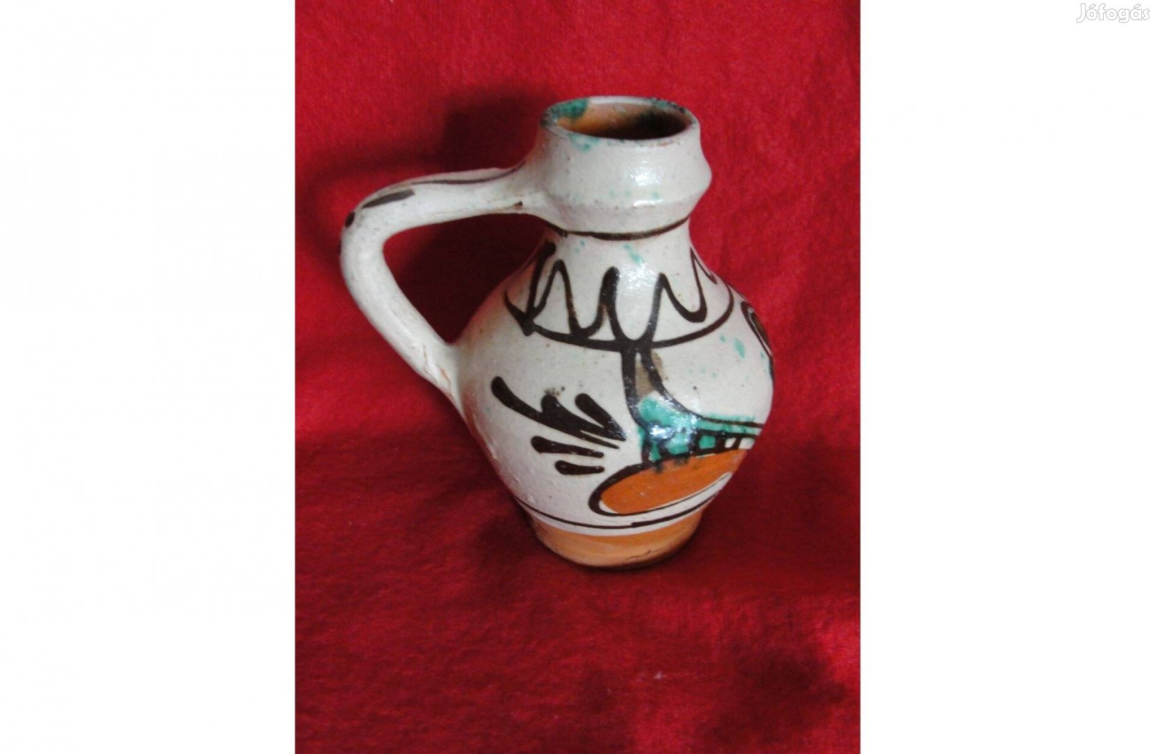 Festett kerámia füles kancsó korsó váza 11 cm_