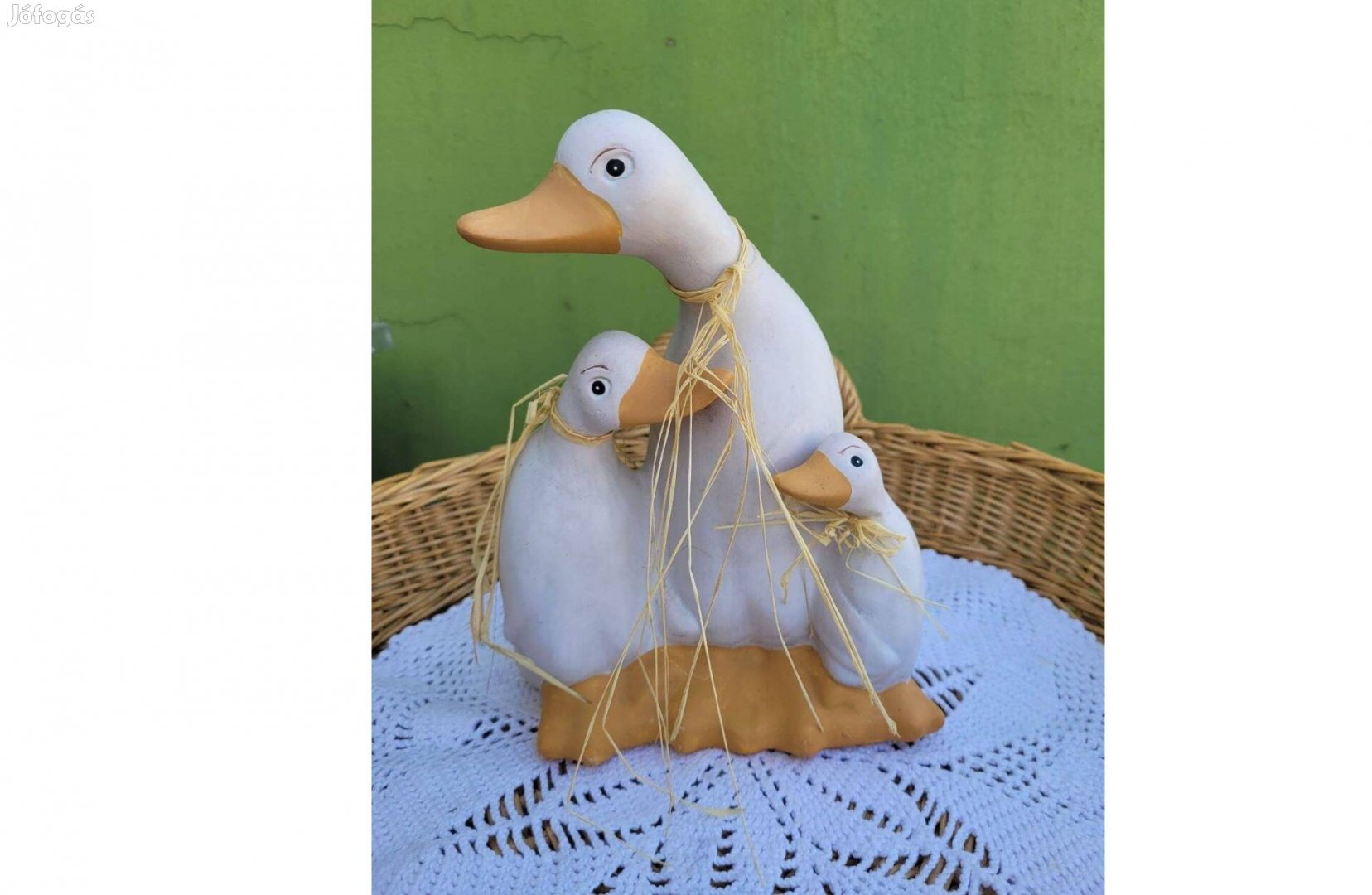 Eladásra kínálom a képen szereplő festett kerámia libacsaládot, kertidíszt. A képek magukért beszélnek. Körbe fotóztam. Szép újszerű állapotban. Kézműves darab.