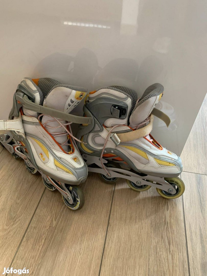 Női FILA egysoros, félmerev cipős görkorcsolya 41-es méretben, újszerű állapotban eladó. Hármas rögzítőrendszer (mikrometrikus csat, fűző és tépőzáras rögzítés a lábfejnél) a jobb tartás érdekében.