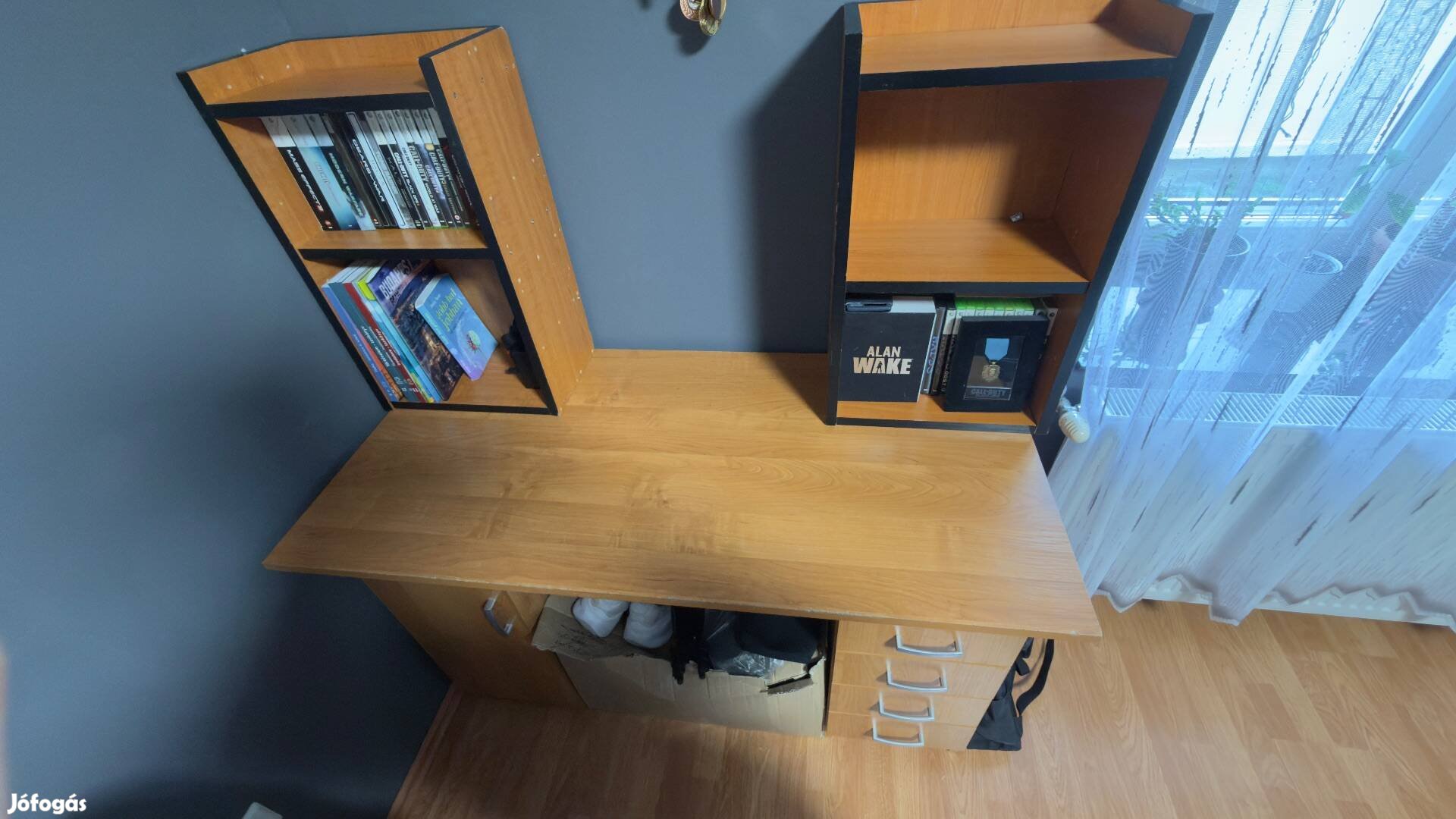 Eladó jó állapotú használt íróasztal polc al együtt.