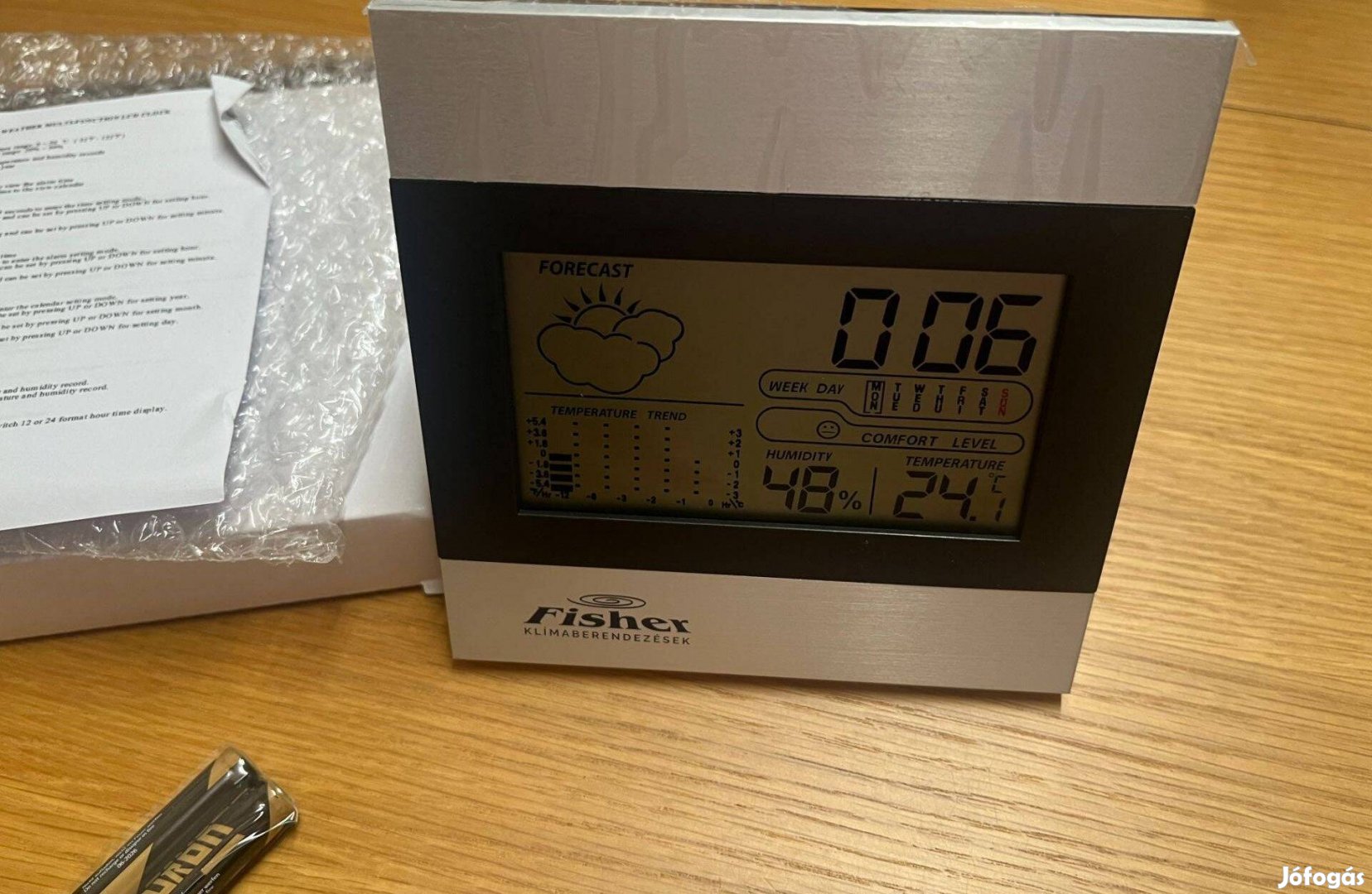 Fisher digitális időjárás állomás és óra Új, dobozában