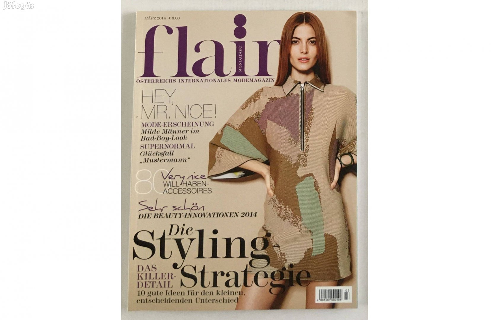 Eladó Flair német nyelvű divatmagazin, újság 2014 márciusi lapszáma. Hibátlan állapotban van, ahogyan a képeken is lehet látni: nem gyűrött, nem ázott, a lapok épek és hiánytalanok, nem foltos. Nincs beleírva, belerajzolva sem. A ragasztás is tökéletesen tart.
