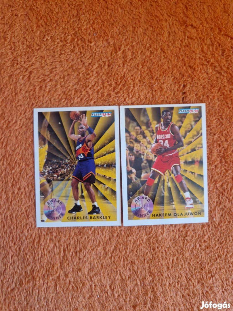 Eladó 2db Fleer 1993-94 NBA Award Winner kosaras kártya, hibátlan állapotban, budapesti személyes átadással, Revolutra utalás esetén postázom is Foxpost-tal.