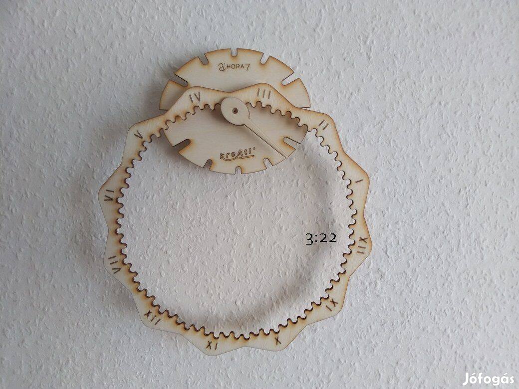 Eladó a képen látható egyedi kialakítású kvarc vezérlésű, halk járású falióra, belső fogaskerekes óramutatóval.
