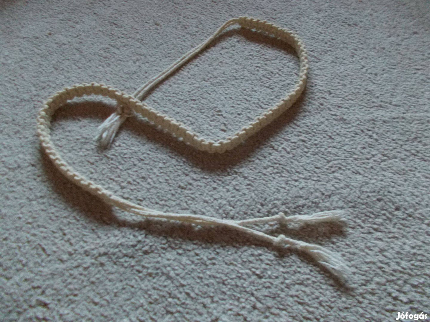 Eladó a képeken látható női öv, fonott, teljes hossza 128 cm, a fonott rész hossza 73 cm. Gépben mosható. Átvehető Budapesten, kérésre postázom.