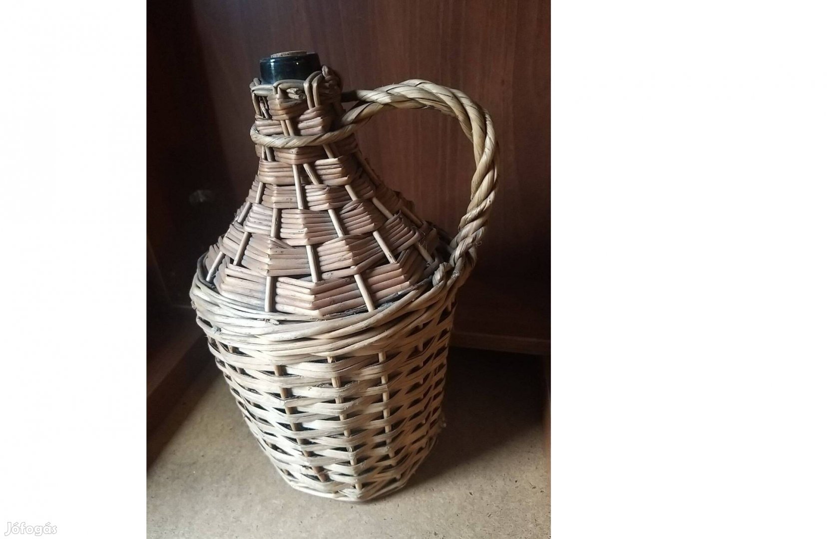 Eladó fonott pálinkás-boros demizson üveg dekorációs célra vagy használatra .