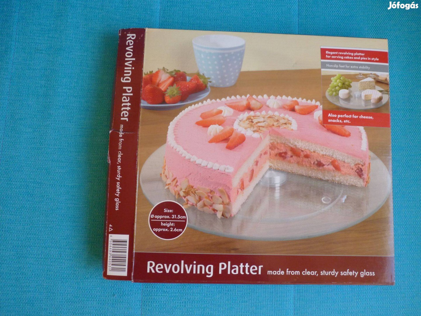 Forgó üvegtál, tálca, tortatál, sajtkínáló eladó. 31,5 cm.