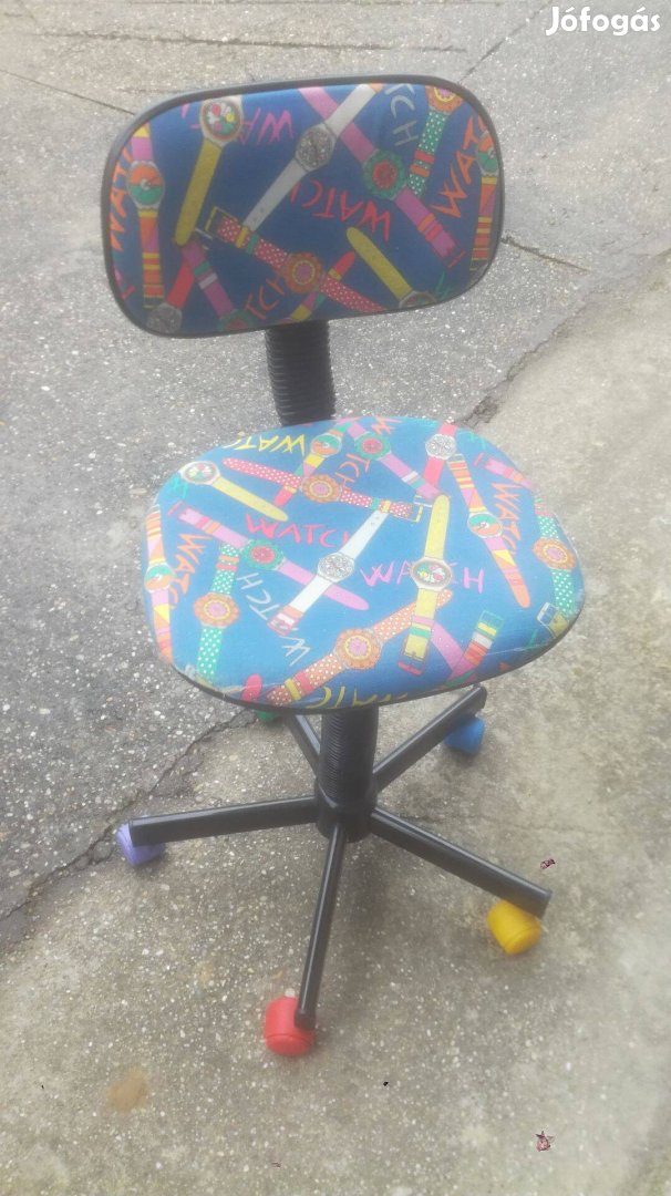 Főleg gyermeknek való színes, vidám küllemű forgószék eladó. Kinőttük. Az érdeklődőket kérem, hogy telefonon keressenek.
