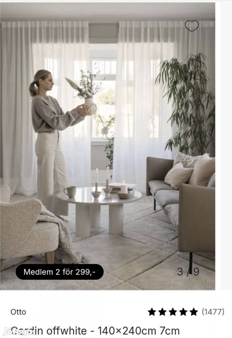 Svédországban vasarolt, nem használt függöny. Mérete: 140x240 cm. A fehérből 5 db van a zöldből 1 db. A 6 db függöny 15.000,-Ft Átvehető a Marina parton Budapesten